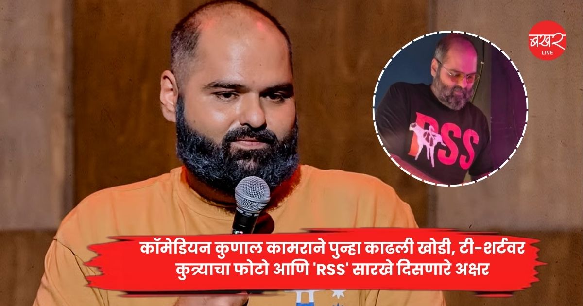 Comedian Kunal Kamra : कॉमेडियन कुणाल कामराने पुन्हा काढली खोडी, टी-शर्टवर कुत्र्याचा फोटो आणि ‘RSS’ सारखे दिसणारे अक्षर November 26, 2025
